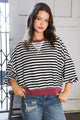 This top is such a fun take on stripes, we love the fit with those tiered bell sleeves. It’s more of a fitted cut through the body and it looks great with jeans or tucked into a skirt. The stripes are cream. The piece is simple but still elevated.