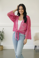 This open front scarf hem cardigan with hoodie is perfect for cool evenings or coastal vacays. Lightweight with front pockets, this textured knit cardigan is bright and cherry and perfect for layering.