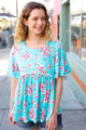 Slip on this eye-catching textured two-tone color block top featuring dolman mint cap sleeves and a lace-up neck design. With trendy out seam overlock reverse stitching and colorful stripes, this summer-to-fall style is perfect for changing temps.