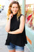 Sweet New Days Black Smocked Neck Pleated Sleeveless Top