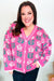 All For Love Fuchsia Flower Print Button Down Knit Cardigan