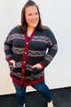 This soft cardigan is one of those pieces that just makes any outfit feel a little more special. It’s got that cozy knit body in a soft grey, and then the sleeves and trim pop with those colorful fair isle inspired patterns. The playful fringe detail on the hem is our favorite part. It’s an easy open-front fit, not bulky at all, and perfect to throw on over jeans and a tee.