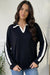 Varsity Vibes Notched Collar Black Top