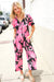 Unique and eye catching describes this wide leg, buttery smooth jumpsuit featuring side pockets, tie bow details, puff ruffle short sleeves and a back neck button. With a trendy hemline above the ankles, turn heads with this casual chic elastic waist jumper!