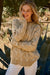 This sweater is one of those pieces you’ll wanna live in. It’s got a super soft feel with a cozy knit that has a subtle chevron pattern that adds just enough texture without being too much. The color is a warm oatmeal tone.