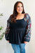 Charming Black Square Neck Border Print Bubble Sleeve Top