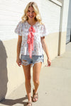 Woven + Babydoll Design + Ribbon Bow Tie Details + Folded Puff Sleeves