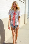 Feeling Femme Ivory Ribbon Bow Tie Folded Puff Sleeve Top