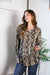 This snakeskin print top is such a fun statement piece. The fit is relaxed and flowy with a little extra length, so it works great with jeans or even leggings. We love the functional buttons and pockets. It also has an adorable ruffle hem!