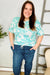 Step into spring with this wavy rib puff banded short sleeve top. With a round neck, banded hemline and big floral print, this adorable top can be tucked in or tucked out.