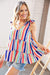 Multicolor Vertical Stripe Tie Bow Woven Top