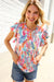 Slip on this floral leaf print top over all your denim bottoms and look adorable wherever you go. Lightweight and buttery smooth, this round neck short sleeve babydoll top will soon be your go-to casual staple.