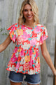 Floral Print + Side Pockets + Ruffle Hem + V Neck