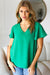 Glam up your spring ensembles with this airflow top featuring a V neck and flutter sleeves. Pair with jeans and sandals for a fun and flirty look.