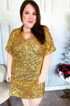 Look your best at holiday parties or New Year's with this gold sequined babydoll dress with short sleeves. With a dolman design, an elastic waist and fully lined, be ready to turn heads with this stunner!