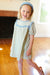 This charming blue and yellow textured gingham dress features a back neck button closure and short elastic tie sleeves. This youth dress exudes sweetness!